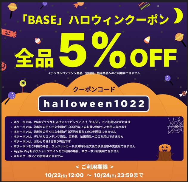 BASEショップ開設数が150万ショップを突破いたしました。これを記念して、6月18日(金)〜 6月24日(木)の期間中、ショッピングアプリ「BASE」でご利用いただける5%OFFクーポンを配布いたします。ご購入の際にク...